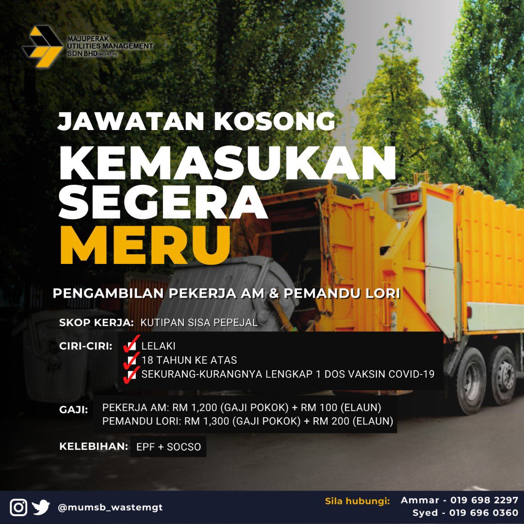 Majuperak Utilities Management Sdn Bhd On Twitter Kemasukan Segera Jawatan Kosong Bagi Pekerja Am Crew Amp Pemandu Lori Di Meru Pemohon Boleh Terus Menghubungi Ammar 019 698 2297 Syed 019