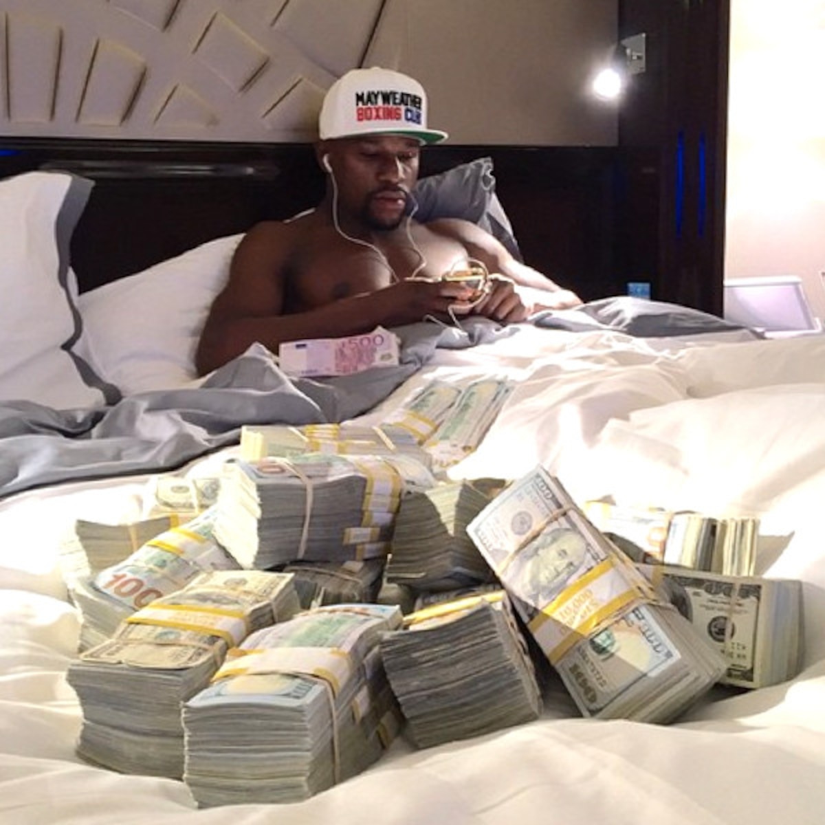 Floyd Mayweather Lies In Bed With Giant Amount Of Cash See Pic E Online